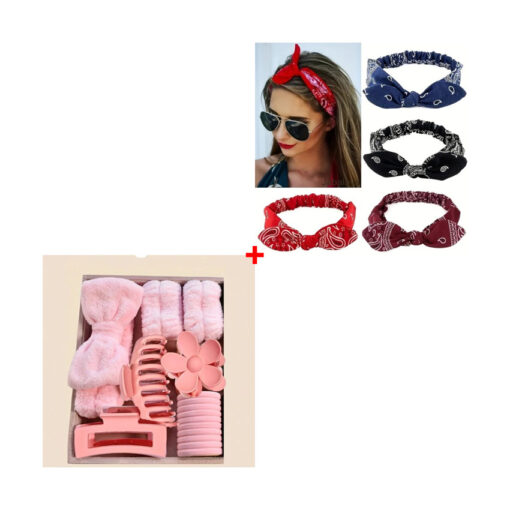 Add playful variety to your collection with the Bundle of 6pcs Paisley Print Rabbit Ear Knot Headbands and 16pcs Bowknot Hair Set! The paisley headbands bring a fun, retro-inspired touch, while the bowknot set offers endless styling options with cute, colorful designs. Together, they provide the perfect mix of charm and versatility for everyday hair styling.